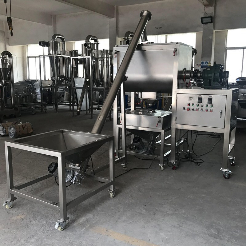 c: Linia produkcyjna: Mieszalnik dwuwstęgowy może współpracować z przenośnikiem ślimakowym, lejem zasypowym i napełniaczem ślimakowym, tworząc linie produkcyjne.
